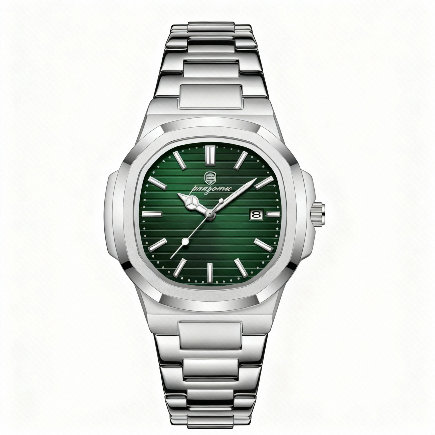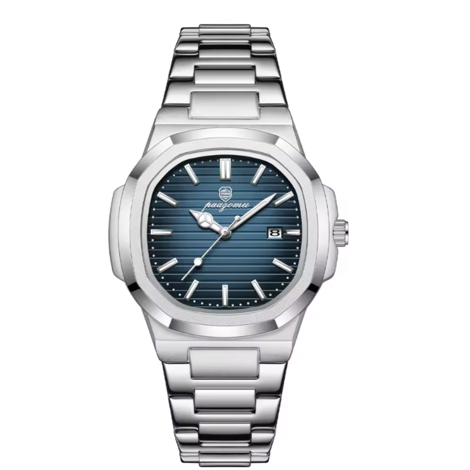 The LORVIAN™ embodies timeless sophistication through a seamless fusion of refined craftsmanship and contemporary precision. Its brushed stainless-steel case catches the light with effortless poise, while the deep oceanic dial shifts from turquoise to sapphire tones a hypnotic play of reflections reminiscent of water in motion.